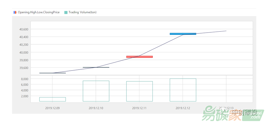 2019年12月09日至2019年12月13日,韓國碳市場價在39450-40550韓元/噸之間波動(約33.6-34.5美元/噸)。