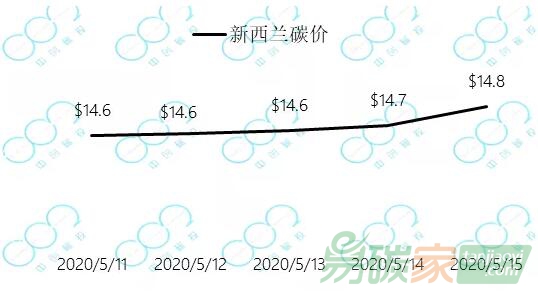 2020年5月11日至2020年5月15日,新西蘭碳價小幅上漲至14.8美元每噸。