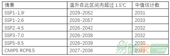 *此情景下不包含3個(gè)從未超過(guò)1.5℃的情景。