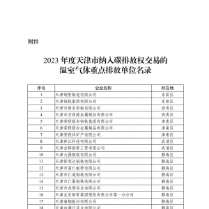 根據(jù)《天津市碳排放權(quán)交易管理暫行辦法》規(guī)定和有關(guān)工作要求,天津市2023年度碳排放履約工作已于6月30日結(jié)束?,F(xiàn)將2023年度納入碳排放權(quán)交易的溫室氣體重點(diǎn)排放單位碳排放履約情況公告如下:納入企業(yè)共154家,完成履 ... ...